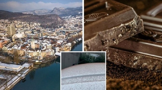 В град Олтен, Швейцария, паднаха необичайни валежи под формата на частици какао на прах. Жител на града сподели пред местния вестник Oltner Tagblatt снимки, показващи как кафеви капки покриват колата му.